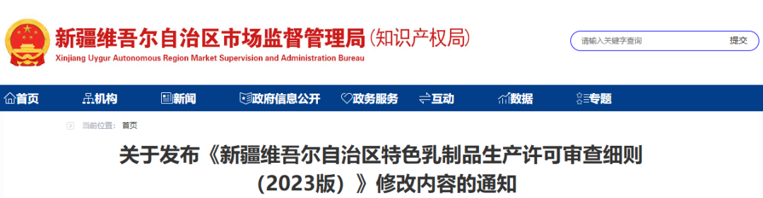 地方博览 | 《新疆维吾尔自治区特色乳制品生产许可审查细则(2023版)》修改内容发布