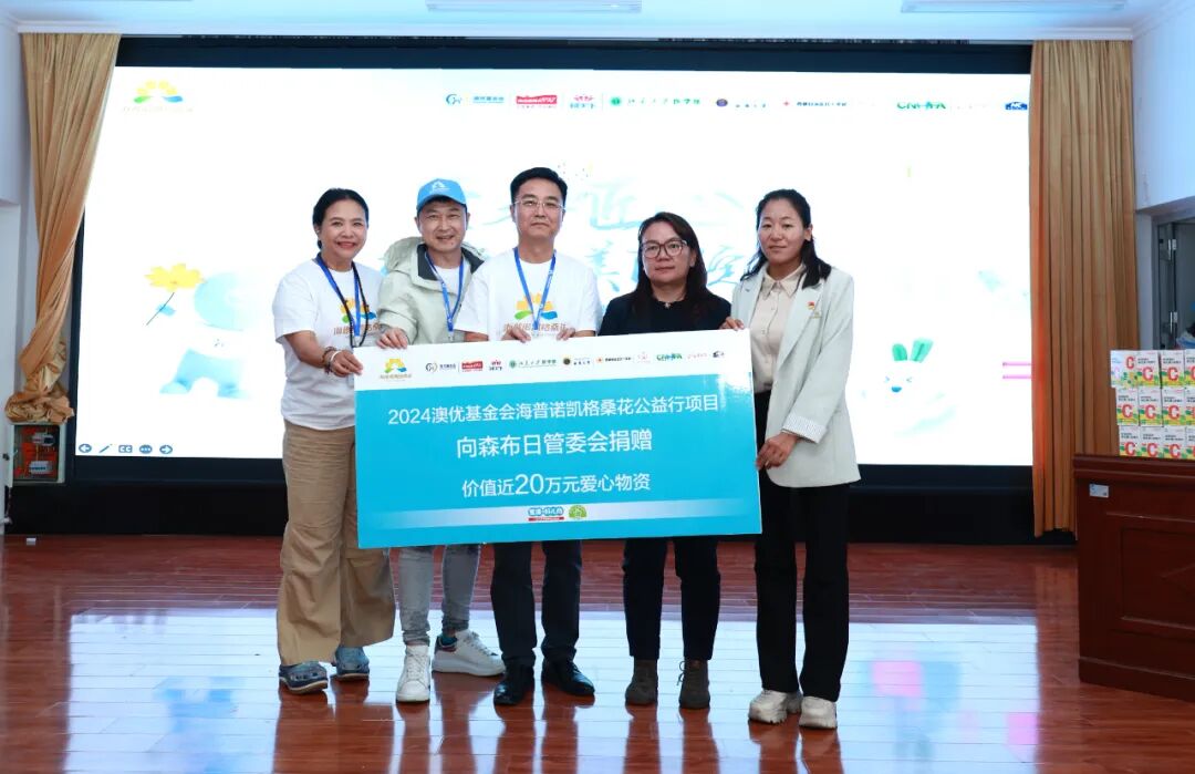 △中国营养保健食品协会向2024澳优基金会海普诺凯格桑花公益行项目捐赠。