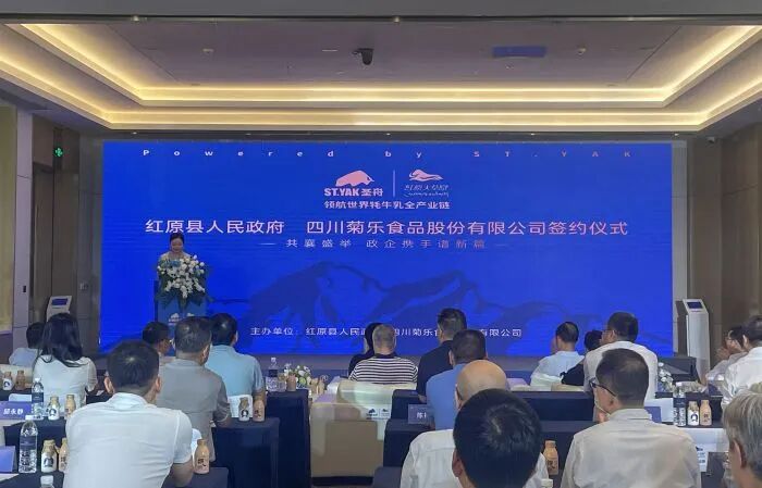 8月6日,阿坝州红原县人民政府与四川菊乐食品股份有限公司(简称“菊乐食品”)签约仪式在成都市举行。菊乐食品将在红原县境内设立牦牛乳制品企业、电商运营企业,依托红原县牦牛产业优势,打造全产业链牦牛乳制品企业,带动农牧民增收致富。