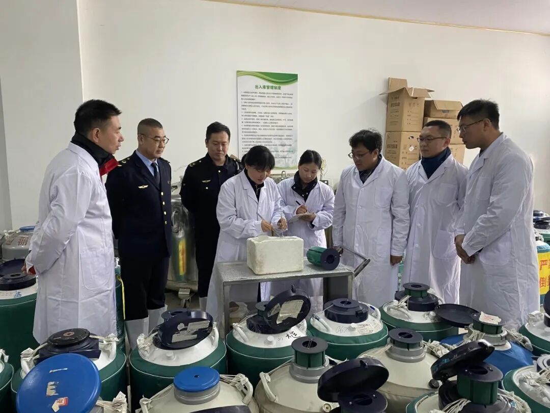 为了落实农业农村部《2024年全国种业监管执法年活动方案》有关部署和《全国畜牧总站关于做好2024年全国种畜禽质量监测工作的通知》有关要求,强化种畜禽质量监管,净化畜禽种业市场,根据《辽宁省2024年种畜禽质量监管工作方案》有关安排,10月18日-19日,辽宁省农业农村厅种业管理处、农业综合执法局、省畜禽遗传资源管理站赴大连市、沈阳市开展种畜禽质量监管工作,重点对2家种公牛站生产的牛冷冻精液进行抽检。全国畜牧总站畜禽种质资源保存中心副主任刘刚、农业农村部牛冷冻精液质量监督检验测试中心(北京)主任王彦平等一行来辽指导种畜禽质量监管工作,并对种公牛站建设情况进行调研。