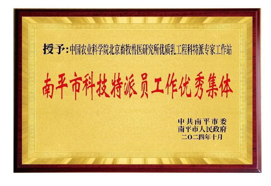 由国家奶业科技创新联盟理事长、中国农业科学院北京畜牧兽医研究所研究员王加启牵头成立的国家优质乳工程科特派专家工作站——中国农业科学院北京畜牧兽医研究所优质乳工程科特派专家工作站被授予“南平市科技特派员工作优秀集体”的荣誉称号。奶业是福建省南平市特色产业之一,但南方高温高湿气候对奶牛养殖存在不利影响。为了解决制约奶业发展的障碍,提升奶业现代化饲养水平,引导奶业走绿色发展道路,长富成立了以王加启研究员为站长的中国农业科学院北京畜牧兽医研究所优质乳工程科特派专家工作站,发挥其技术特长和科技优势,助力南平市现代奶业产业高质量发展。自科特派制度落地实施以来,先后有23位科技特派员为长富提供了宝贵的科技支持。他们深入生产一线,针对企业在乳制品加工、质量控制和营养研发等方面遇到的问题,提出了切实可行的解决方案,帮助长富不断提升产品质量和技术水平。奶业是一个产业链长、涉及面广、科技含量高的产业。在管理上,科技特派员协助长富建立了全产业链质量管理控制体系,实现全产业链信息化、产品质量可追溯管理。在加工环节,科技特派员潜心攻关创新技术,不仅更多保留牛奶中的天然活性营养,而且更加绿色低碳。在运输配送上,率先建立先进的冷链管控流程,实现挤奶、贮藏、运输、销售的“冷链(2-6℃)一条龙”,确保牛奶全程处于冷藏保鲜状态。长富伴随着科技特派员制度的深入实施而成长壮大,成为了中国奶业20强企业、全国首家获得国家优质乳标识授权使用的乳企,该标识代表我国牛奶的高品质。它对牛奶品质,尤其是活性营养含量制定了国际领先的标准,只有通过国家优质乳工程严格的质量标准体系认证才能申请使用标识。这意味着在科技特派员制度帮扶与推动下,长富将科技创新转化为产业发展的动能,正在加快形成奶业新质生产力。