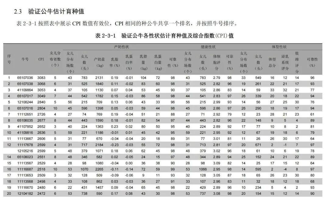 近日,农业农村部种业管理司和全国畜牧总站发布了《2024年第二次中国乳用种公牛遗传评估概要》,公布了全国18个种公牛站的1371头种公牛的遗传评估结果。实施奶牛群体遗传改良计划对提升牛群遗传水平,改善奶牛健康状况,提高牛群产奶性能,促进奶业可持续发展具有重大意义。乳用种公牛遗传评估是奶牛群体遗传改良计划的重要内容,是合理选择使用优秀种公牛的依据,种公牛遗传品质直接关系到奶牛群遗传改良效果。奶业发达国家的经验表明,种公牛对奶牛群体遗传改良的贡献率超过75%。经过多年努力,我国以奶牛生产性能测定、体型评定、品种登记、公牛后裔测定、种牛遗传评定等为主要内容,中国乳用种公牛遗传评估体系的建立,为客观评价乳用种公牛遗传品质提供了保障。本次评估公布了全国18个种公牛站的1371头种公牛遗传评估结果,其中包括11个种公牛站的308头中国荷斯坦牛验证种公牛常规遗传评估结果,15个种公牛站的1022头中国荷斯坦牛青年种公牛基因组检测遗传评估结果,以及7个种公牛站41头娟姗牛的体型评定结果。此次评估发布的结果中保留了产奶量、乳脂率和乳蛋白率3个性状,同时发布了中国奶牛性能指数(CPI)及产奶量、乳脂率、乳蛋白率、乳脂量、乳蛋白量、体细胞评分、体型总分、泌乳系统评分、肢蹄评分共9个不同性状的估计育种值,便于育种者和生产者根据不同的选种目标进行选择。为便于查阅使用,还分别对9个不同性状估计育种值排名前50名的种公牛进行了重点推介。此次评估中,生产性能数据来自3325个奶牛场260.4万头荷斯坦牛2495.3万条数据,体型数据来自1464个奶牛场44.1万头牛。借鉴国际奶牛育种体系的经验,按照《中国荷斯坦牛公牛后裔测定技术规程》规定,验证种公牛需要有足够多的女儿数,且应分布在至少5个省份的20个牛场中,每省份至少3个场。鉴于我国奶牛育种历史短,能完全满足上述女儿数和女儿分布的公牛尚少,因而设置了过渡性公牛后裔成绩筛选条件,要求验证种公牛女儿应具有合格的头胎产奶性能记录,女儿分布在3个或3个以上省份,且分布总群体数大于等于15个。