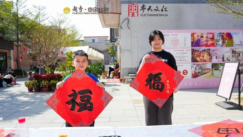 大野牧乡迎春开放当天,正值越秀·田园牧歌新春活动的高潮,位于田园综合体首开区的龙潭电影公社热闹非凡——非遗庙会、新春年货市集、《西游记》cosplay巡演、户外滑翔伞、夜间浪漫烟花秀……从早到晚的连串文旅体验,诠释着广府乡村独有的质朴与热闹。