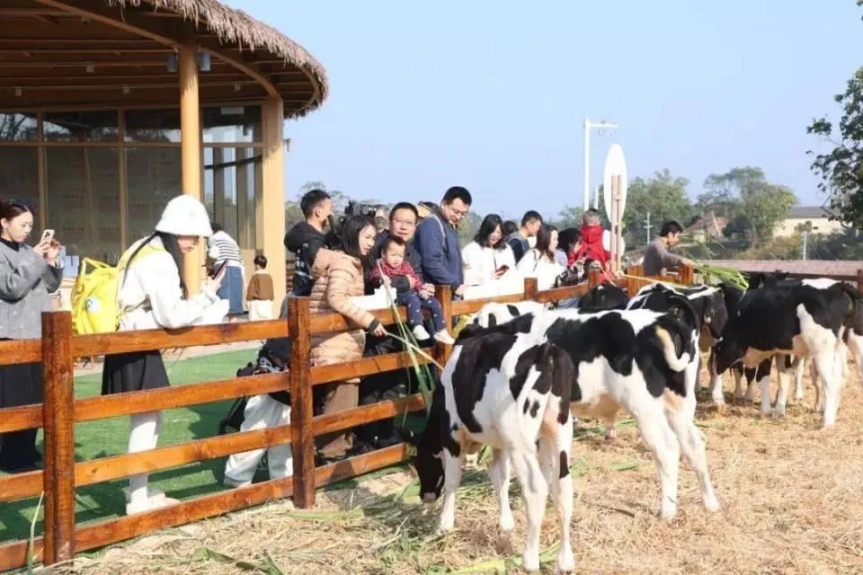 在这里,游客可体验与奶牛近距离互动、牛奶主题手作DIY、大野牧乡美景观光、田园农趣体验、主题住宿、原生态自助餐饮等多种文旅业态。新春贺年、趁墟赶集